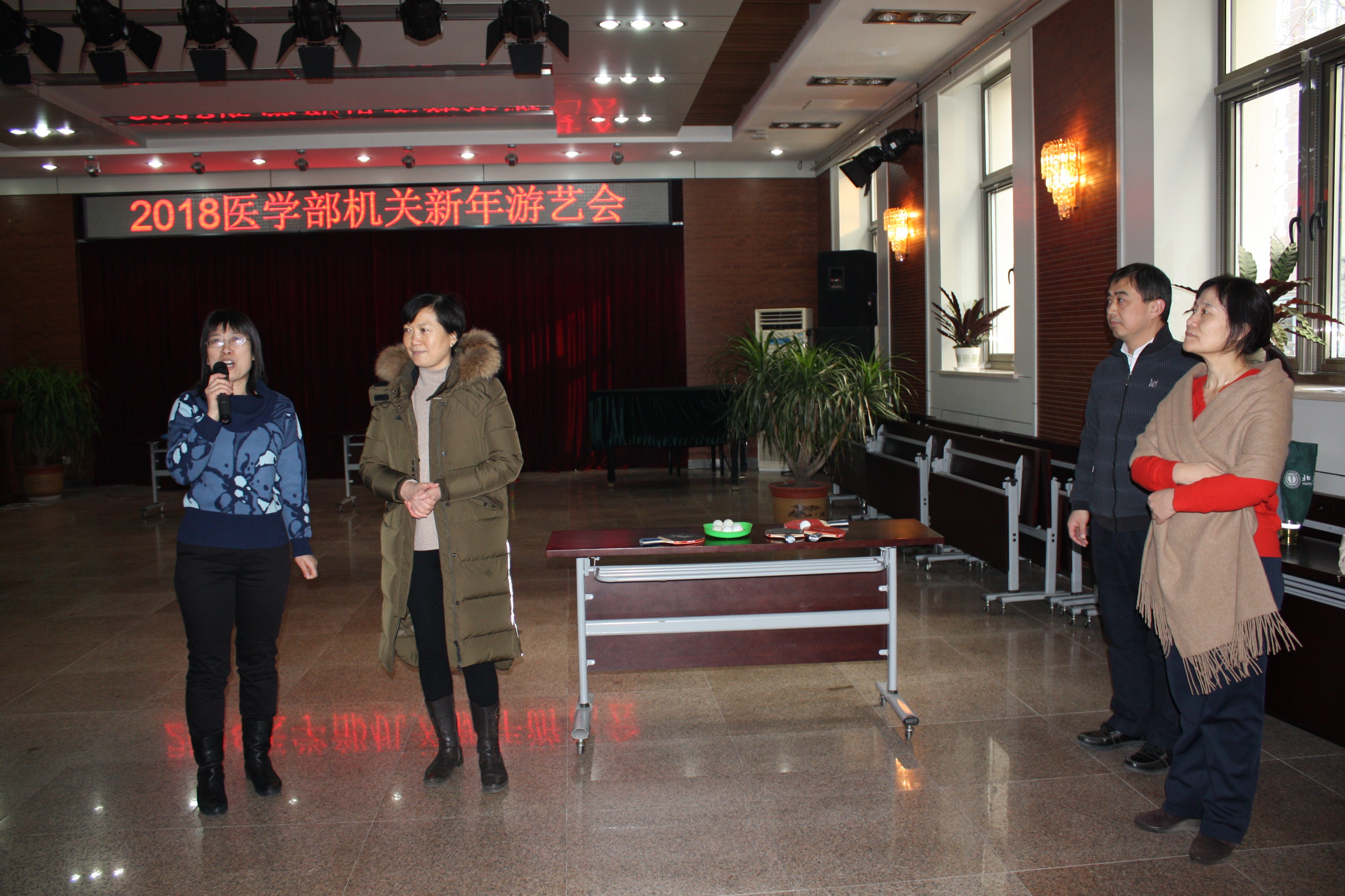 为了迎接2018新年的到来,机关党委、机关工会于20171229日下午,在医学部工会活动中心举办了机关职工新年游艺会。医学部党委副书记徐善东、纪委书记范春梅、医学部工会常务副主席刘穗燕、副主席王军波、机关党委书记郭艾花及部分机关部处、直属单位的领导和职工300余人参加了游艺会,游艺会由机关工会主席刘文玲主持。